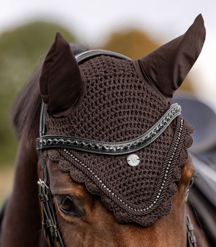 Elegantní čabraka ze zdobeného úpletu, má jemné, pohodlné elastické uši a je doplněná drobnými kamínky.