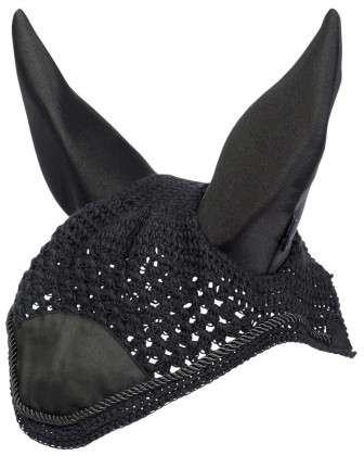 Háčkovaná čabraka na uši s neoprenovou výplní pro zmírnění okolního hluku. Barva černá. Velikosti cob a full.