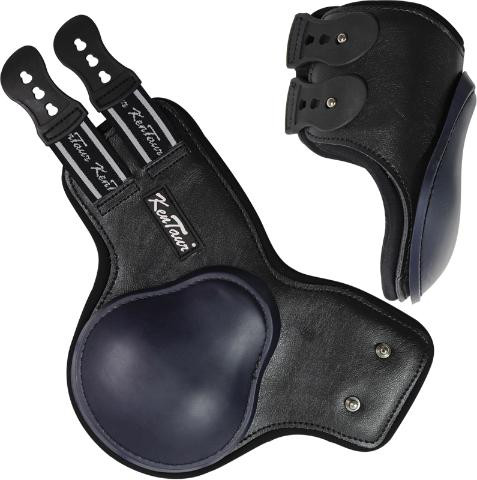Chrániče na zadní nohy s neoprenem. Zapínáni pomocí elastických rychloupínacích řemínků.